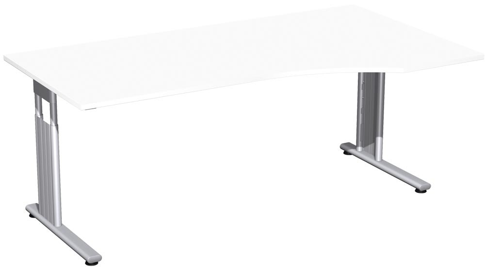 PC-Schreibtisch, BxTxH 1800x1000x680-820 mm, rechts 425 mm, höhenverstellbar, Platte weiß, C-Fuß-Gestell silber