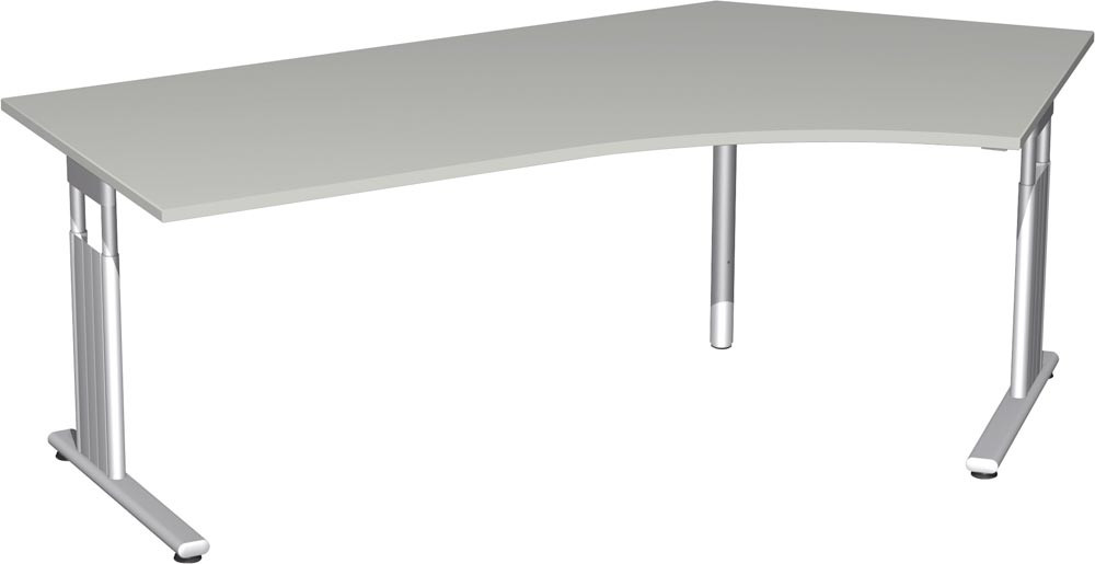 PC-Schreibtisch, BxTxH 2166x1131x680-820 mm, rechts 800 mm, höhenverstellbar, Platte lichtgrau, C-Fuß-Gestell silber