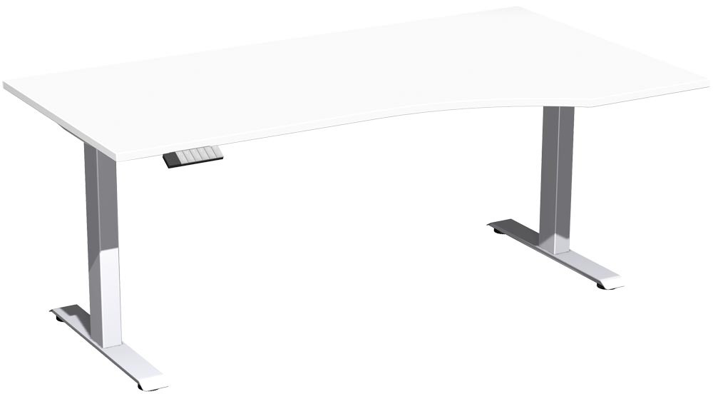 PC-Schreibtisch, elektr. höhenverstellbar, BxTxH 1800x800/1000x630-1280 mm, links 425 mm, Melamin-Platte 25 mm, weiß/silber EP561481
