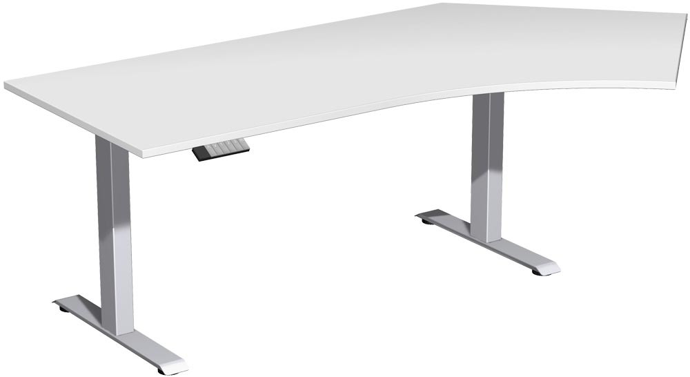 PC-Schreibtisch, elektr. höhenverstellbar, BxTxH 2166x800/1130x630-1280 mm, rechts, Melamin-Platte 25 mm, lichtgrau/silber
