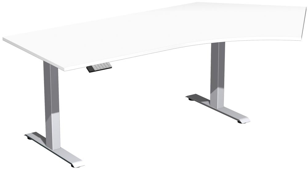 PC-Schreibtisch, elektr. höhenverstellbar, BxTxH 2166x800/1130x630-1280 mm, rechts, Melamin-Platte 25 mm, weiß/silber