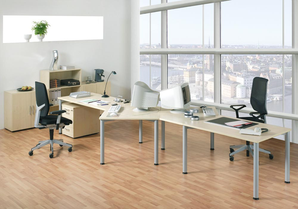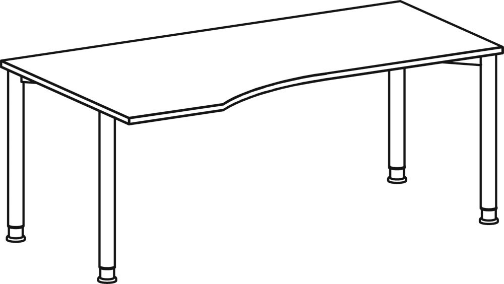 PC-Tisch, rechts, BxTxH 1800x800-1000x680-800 mm, höhenverstellbar, Platte ahorn, Rundrohrgestell silber EP519581