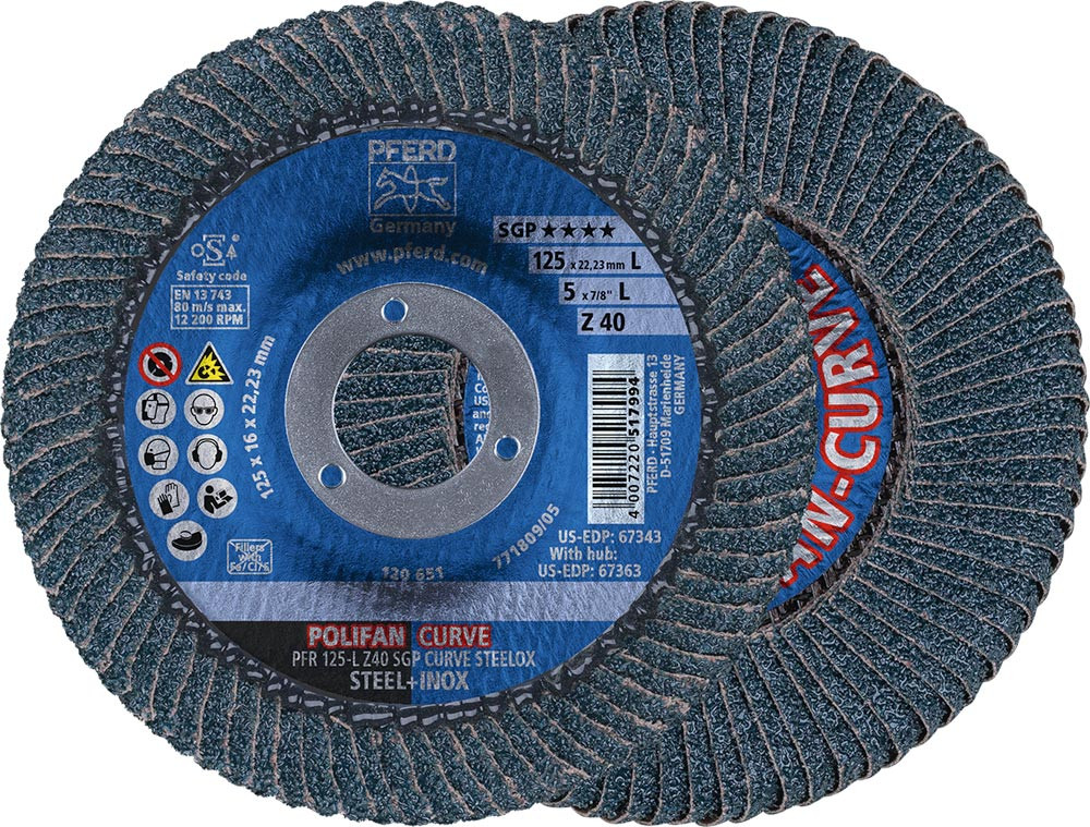 Gerade, radiale AusführungZirkonkorund-Schleifkorn ∙ Durch die radiale Bauform und die spezielle Lamellenanordnung präzises, optimales Ausschleifen der Kehlnahtgeometrie möglich ∙ Optimale Ausnutzung des Schleifmaterials im Radius ∙ Gefertigt nach EN 13743 mit oSa-Kennzeichnung ∙ Lieferung im 10er Pack mit 10 Trennscheiben EHT 125-1,0 SG STEELOX für Stahl und Edelstahl