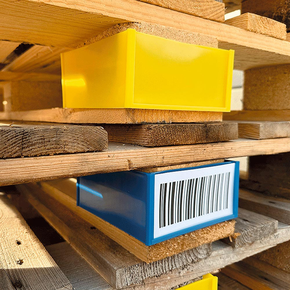 Paletten-ID-Spange, gelb, für den Eckfuß der Palettenschmalseite, BxTxH 113x156x73 mm, VE 25 Stück EP560480