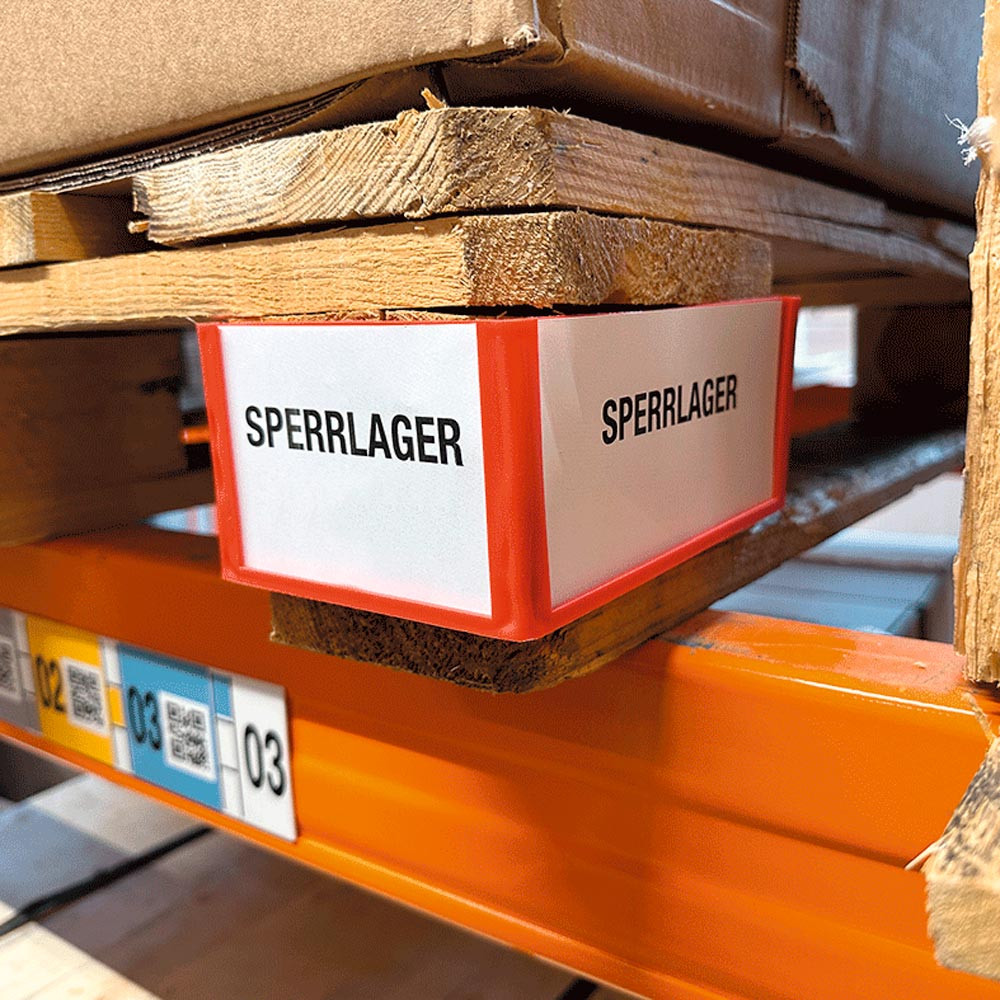 Paletten-ID-Spange, rot, für den Eckfuß der Palettenschmalseite, BxTxH 113x156x73 mm, VE 25 Stück EP560483