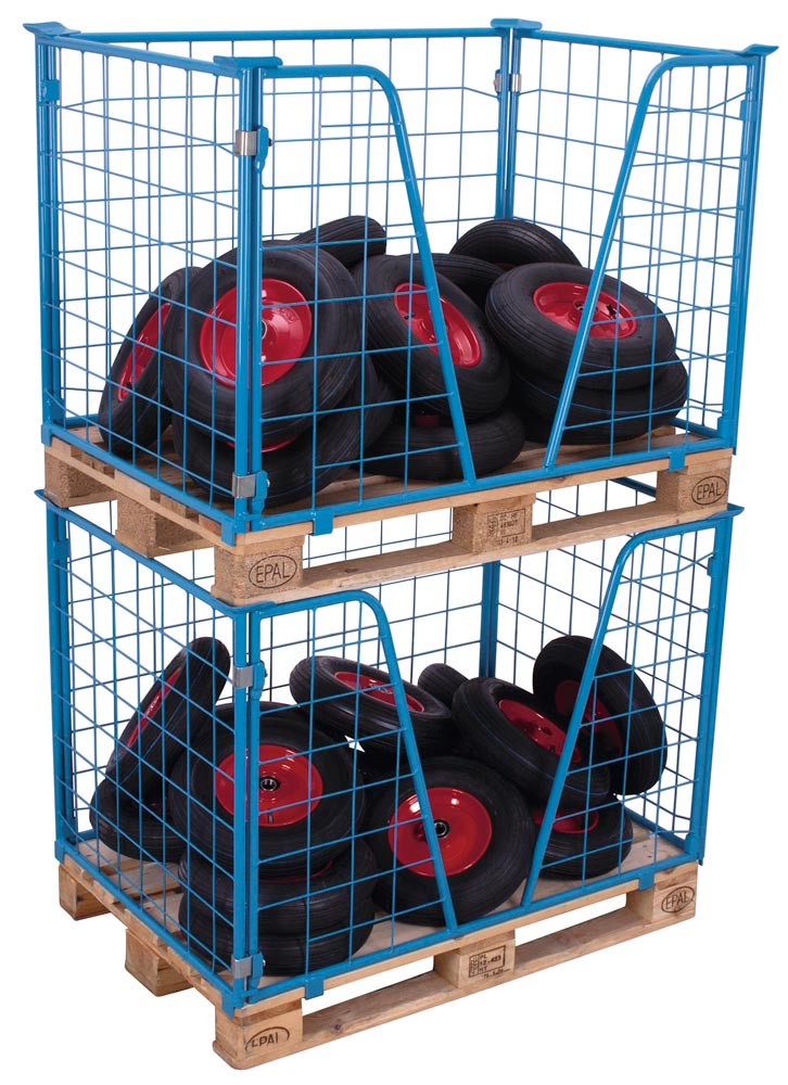 Palettenaufsatz, Höhe 1600 mm, für Paletten 800x1200 mm, Auflast 750 kg, RAL 5012 lichtblau mit 4 festen Wänden und V-Eingriff EP514580