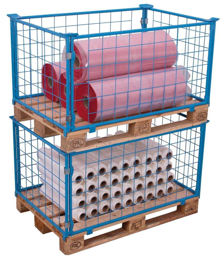 ∙ Stapelbar ∙ Für die optimale Nutzung der Palettenoberfläche ∙ Schnell montiert und bei Nichtgebrauch platzsparend gelagert ∙ Stabile Stahlkonstruktion mit senkrechten Streben aus geschweißtem Stahl für höchste Beanspruchungen ∙ Farbe RAL 5012 lichtblau · Auf Anfrage auch in RAL 7016 anthrazitgrau lieferbar
