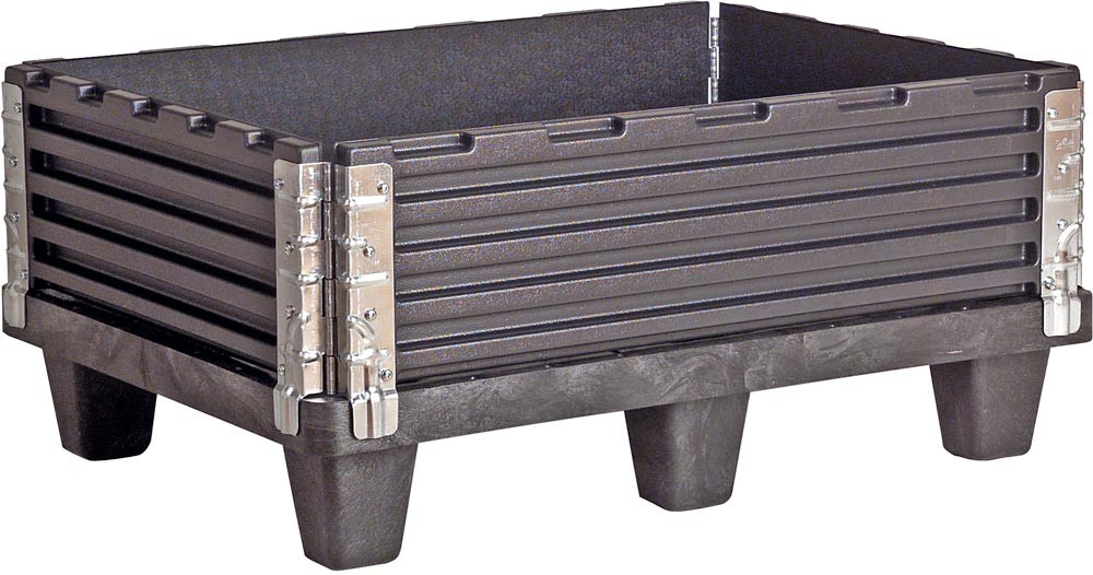 ∙ Aufsatzrahmen für Euro- und Industriepaletten ∙ Aus ABS mit verzinkten Scharnieren ∙ Diagonal klappbar ∙ Rahmenstärke 20 mm ∙ Bei Nichtgebrauch platzsparend zusammenfaltbar ∙ Farbe schwarz ∙ VE 2 Stück