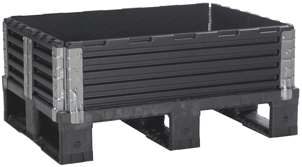 ∙ Aufsatzrahmen für Euro- und Industriepaletten ∙ Aus ABS mit verzinkten Scharnieren ∙ Diagonal klappbar ∙ Rahmenstärke 20 mm ∙ Bei Nichtgebrauch platzsparend zusammenfaltbar ∙ Farbe schwarz ∙ VE 2 Stück