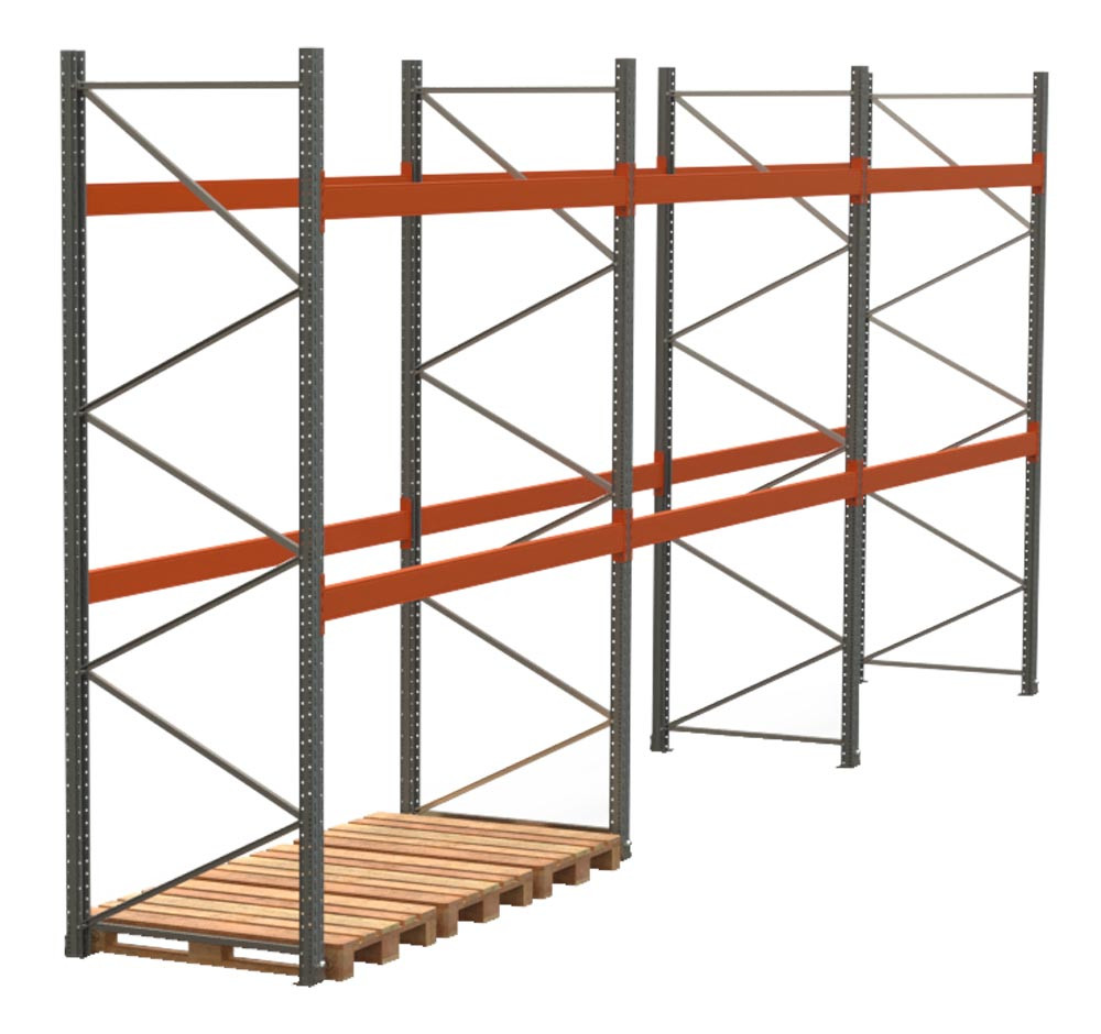 Palettenregal-Set, 1 x Grundfeld + 3 x Anbaufeld, 2 Lagerebenen, Fachlast 3000 kg, Feldlast 6000 kg, BxTxH 11225x1100x2500 mm EP559127