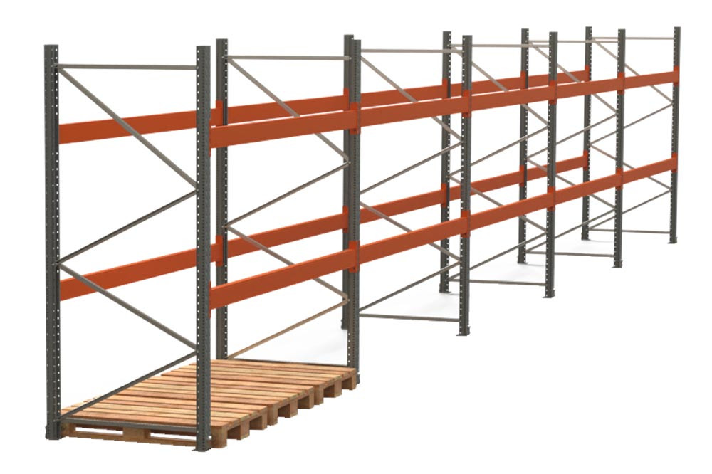 · Dieses System bietet die ideale Lösung für eine professionelle Lagerung von Paletten und schweren Lasten · Für einen effizienten Transport werden die Stützrahmen zerlegt angeliefert · Bolzenanker zur Befestigung der Rahmenständer im Lieferumfang enthalten