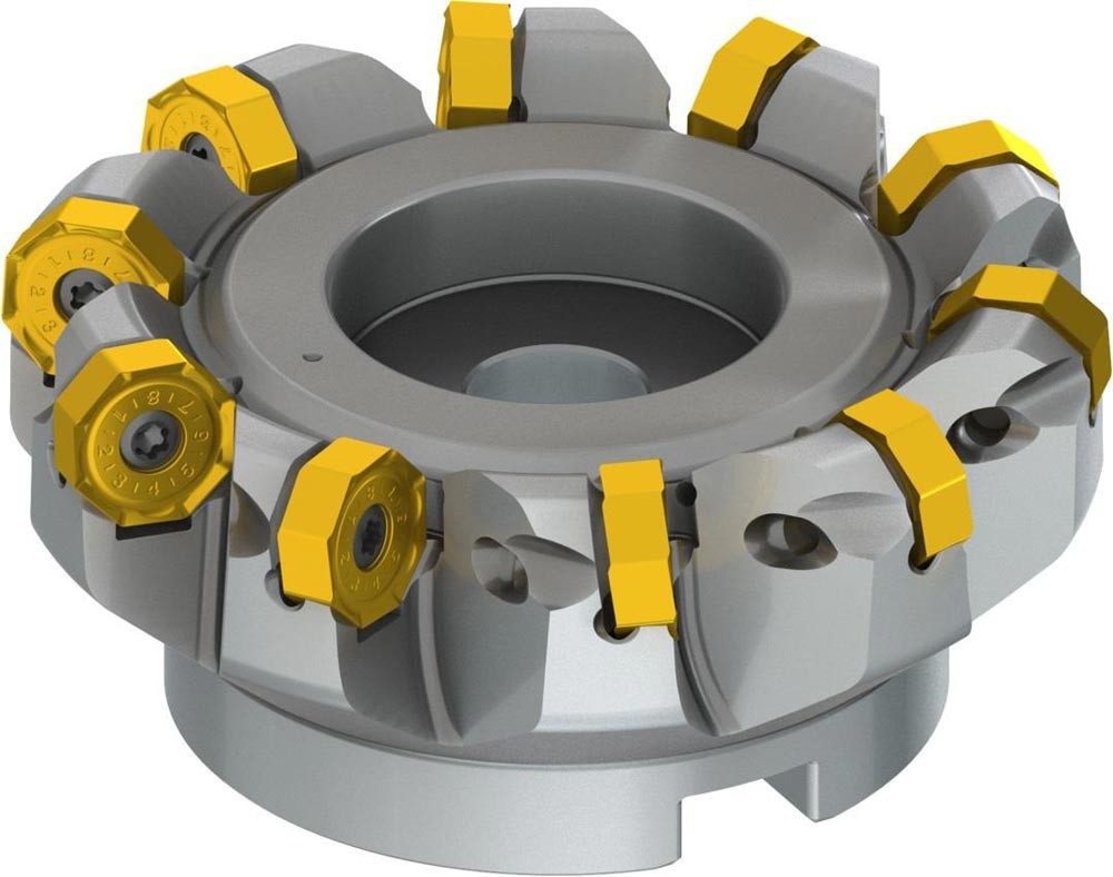 Planfräser mit doppelt negativer Geometrie welche 10 aus ONMX 0605.. · ONMX 0605..-W oder SNMX 1705.. doppelseitige Wendeschneidplatte · Schneiddurchmesser 100mm bis maximal 110,8mm mit 43° Anfahrwinkel und 32mm Bohrung gemäß DIN 8030-A · 50mm funktional und · durchgehende Kühlung zum Planfräsen und Entgratenmit einer maximalen Schnitttiefe von ON.. 4mm · SN.. 7mm