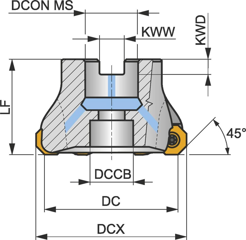Planfräser ISO 63A05R-S45OD06D D.22mm Rechtslauf Schneid-D.72,5mm E6502151