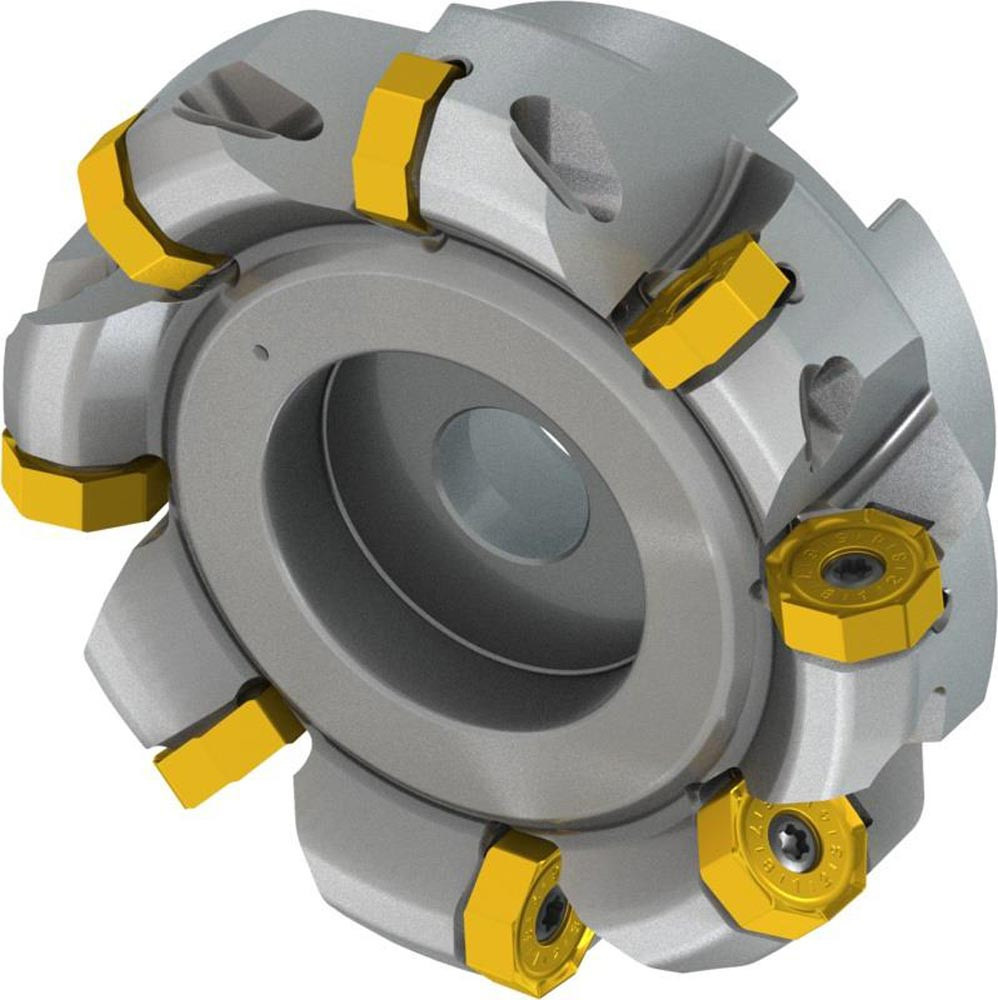 Planfräser mit doppelt negativer Geometrie welche 6 aus ONMX 0605.. · ONMX 0605..-W oder SNMX 1705.. doppelseitige Wendeschneidplatte · Schneiddurchmesser 80mm bis maximal 90,8mm mit 43° Anfahrwinkel und 27mm Bohrung gemäß DIN 8030-A · 50mm funktional und · durchgehende Kühlung und ungleicher Teilung zum Planfräsen und Entgratenmit einer maximalen Schnitttiefe von ON.. 4mm · SN.. 7mm