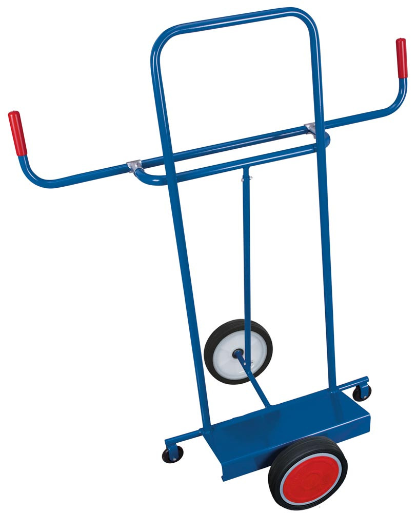 · Zum Längstransport von großflächigen Holz- und Kunststoffplatten · Stabile Schweißkonstruktion · Schaufelblech zum Stützbügel hin abfallend auf die Unterkonstruktion geschweißt · RAL 5010 enzianblau pulverbeschichtet · Schlag- und kratzfest · Stahlblechfelgen mit Präzisions-Rillenkugellager