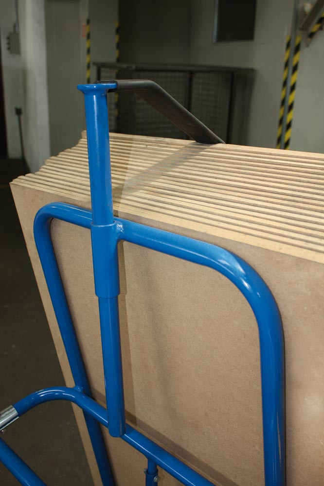 Plattenkarre mit Kippsicherung BxTxH 1260x680 x1425 mm, Schaufelbreite 200 mm, Traglast 250 kg, Vollgummibereifung