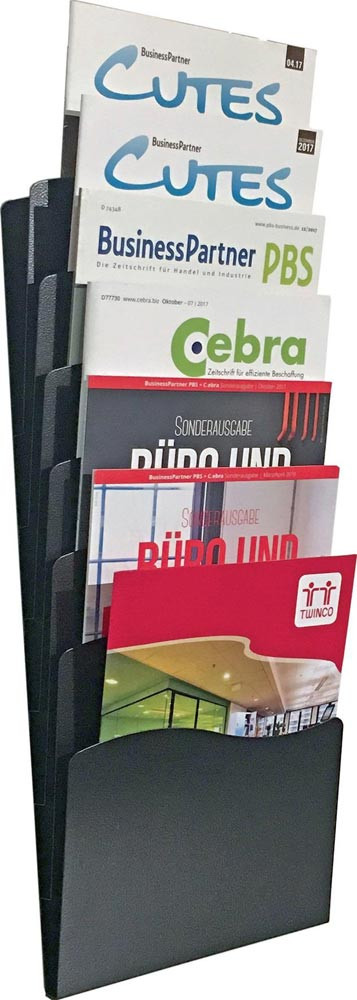 Prospekthalter H430xB240xTmm Anzahl Fächer 5 DIN A4 Metall schwarz E6482085