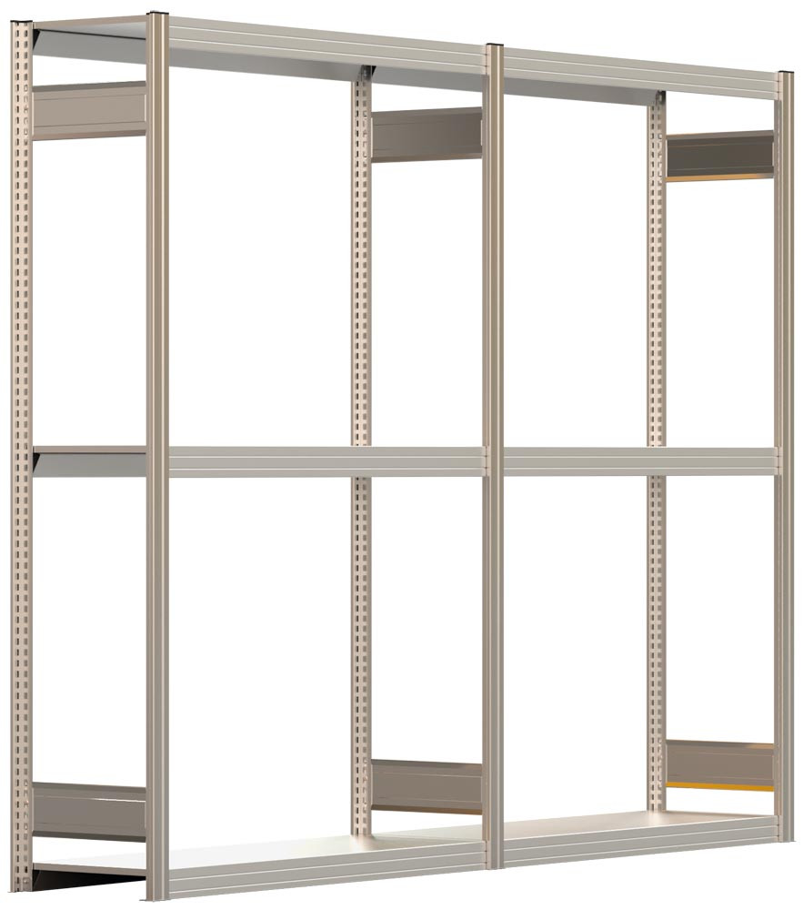 Räderregal-Set, Stecksystem, 1 x Grundfeld + 1 x Anbaufeld, verzinkt, für Kompletträder, BxTxH 2570x400x2000 mm, 3 Ebenen Stufenbalken, Fachl. 250 kg