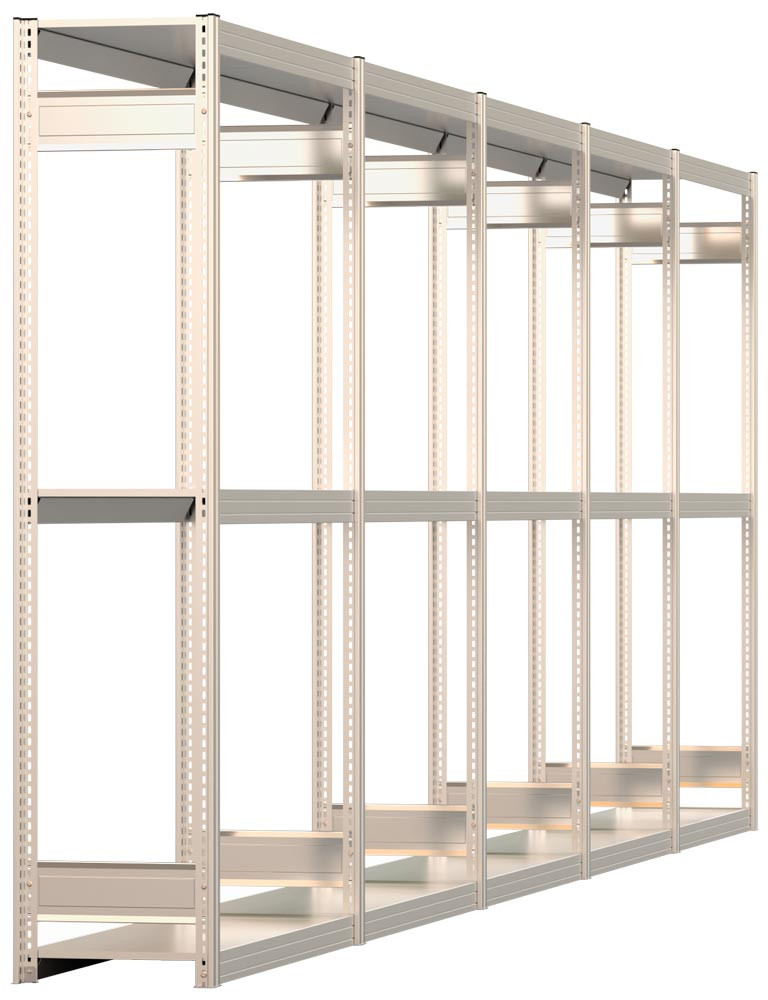 Räderregal-Set, Stecksystem, 1 x Grundfeld + 4 x Anbaufeld, verzinkt, für Kompletträder, BxTxH 6425x400x2000 mm, 3 Ebenen Stufenbalken, Fachl. 250 kg