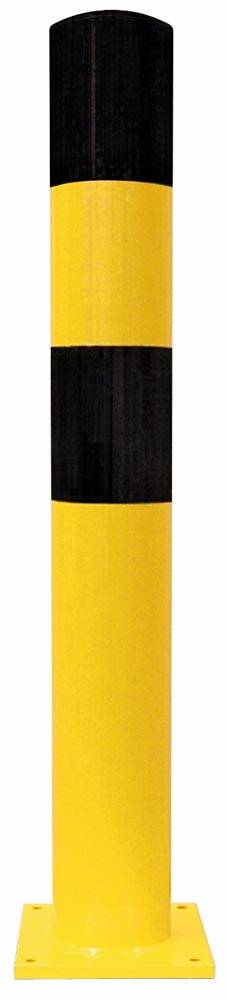 Rammschutz-Poller zum Aufdübeln, feuerverzinkt und gelb kunststoffbeschichtet mit schwarzen Signalstreifen, Durchm. 159 mm, Länge 1200 mm