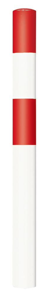 Rammschutz-Poller zum Einbetonieren, feuerverzinkt und weiß kunststoffbeschichtet + rot lackierte Streifen, Durchm. 90 mm, Höhe 1600 mm