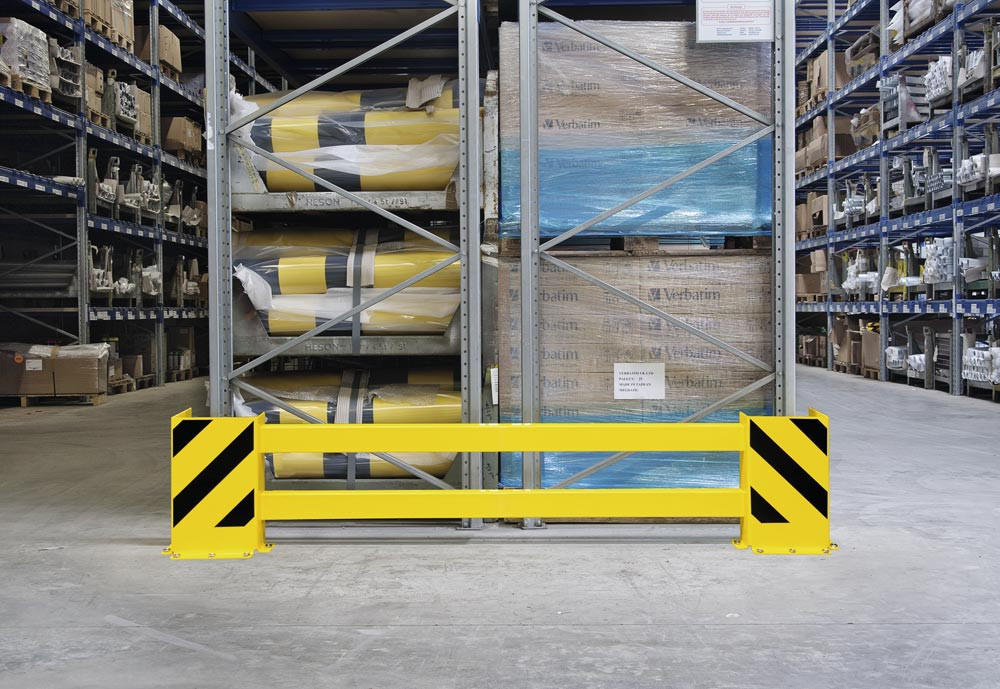 Regalschutz-Planken-Set, für Einfachregalreihe, Innenbereich, einstellbar von 900-1300 mm, beschichtet in gelb, mit schwarzen Streifen EP531310