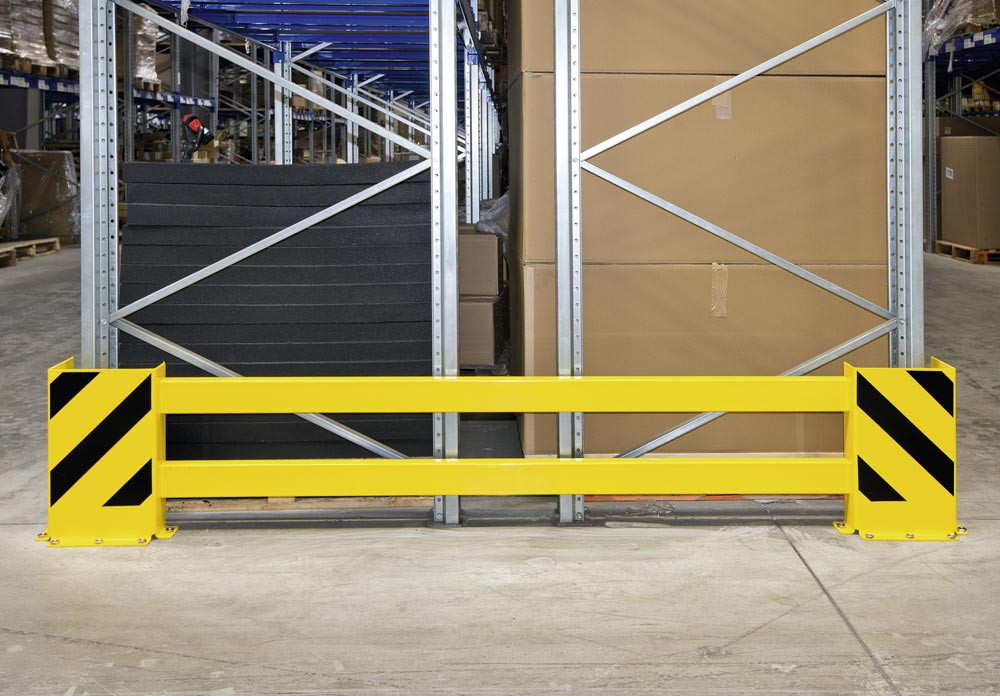 Regalschutz-Planken-Set, für Doppelregalreihe, Innenbereich, einstellbar von 2300-2700 mm, beschichtet in gelb, mit schwarzen Streifen