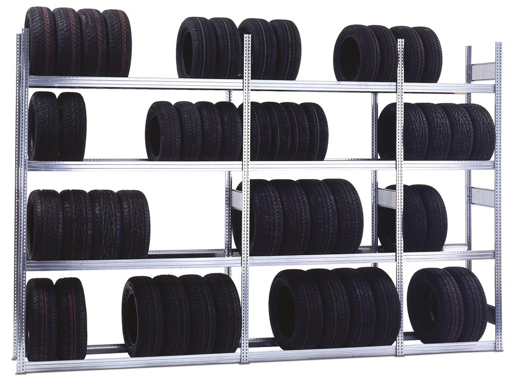 Reifenregal, Grundfeld, verzinkt, 4 Lagerebenen, Fachlast 250 kg, BxTxH 875x400x2500 mm