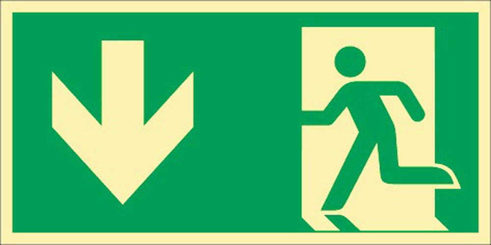 selbstklebende Folie · Symbol und Lichtkante langnachleuchtend · nach neuer ASR A1.3/DIN EN ISO 7010 und DIN 67510 · Notausgang