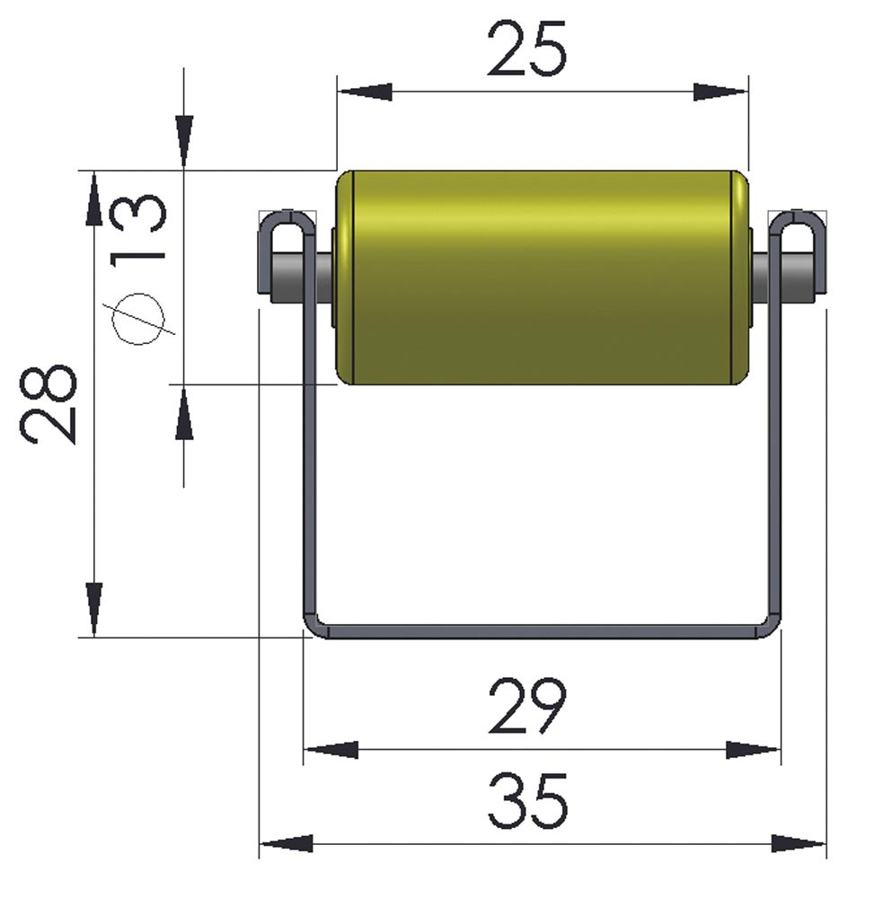 Röllchen-U-Leisten, Profil 26x29x26 mm, verzinkt, Kunststoffrolle Durchm. 13 mm, Traglast 6 kg/Rolle, Achsabstand 50 mm