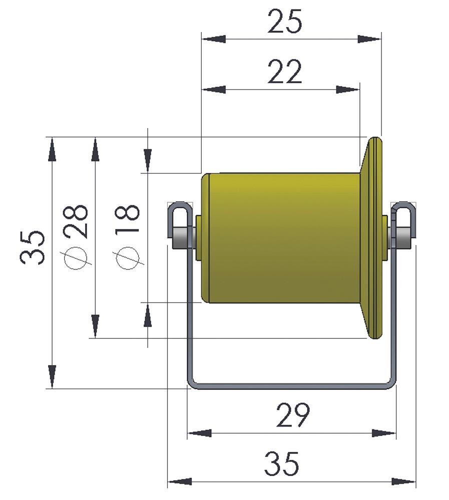 Röllchen-U-Leisten, Profil 26x29x26 mm, verzinkt, Kunststoffrolle mit Spurkranz, Durchm. 18/28 mm, Traglast 6 kg/Rolle, Achsabstand 50 mm