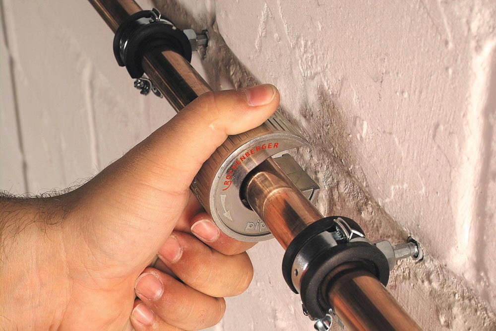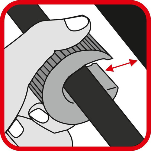 manueller Rohrabschneider zum Trennen von Kupferrohren · Zeitersparnis: schnelles Trennen mit nur wenigen Umdrehungen · Eigenklemmung und Selbstjustierung: keine Deformation des Rohres · Geringer Platzbedarf: durch einen geringen Arbeitsradius von 25 mm ideal für schwer zugängliche Stellen · Anti-Rutsch Oberfläche: für einen sicheren Griff