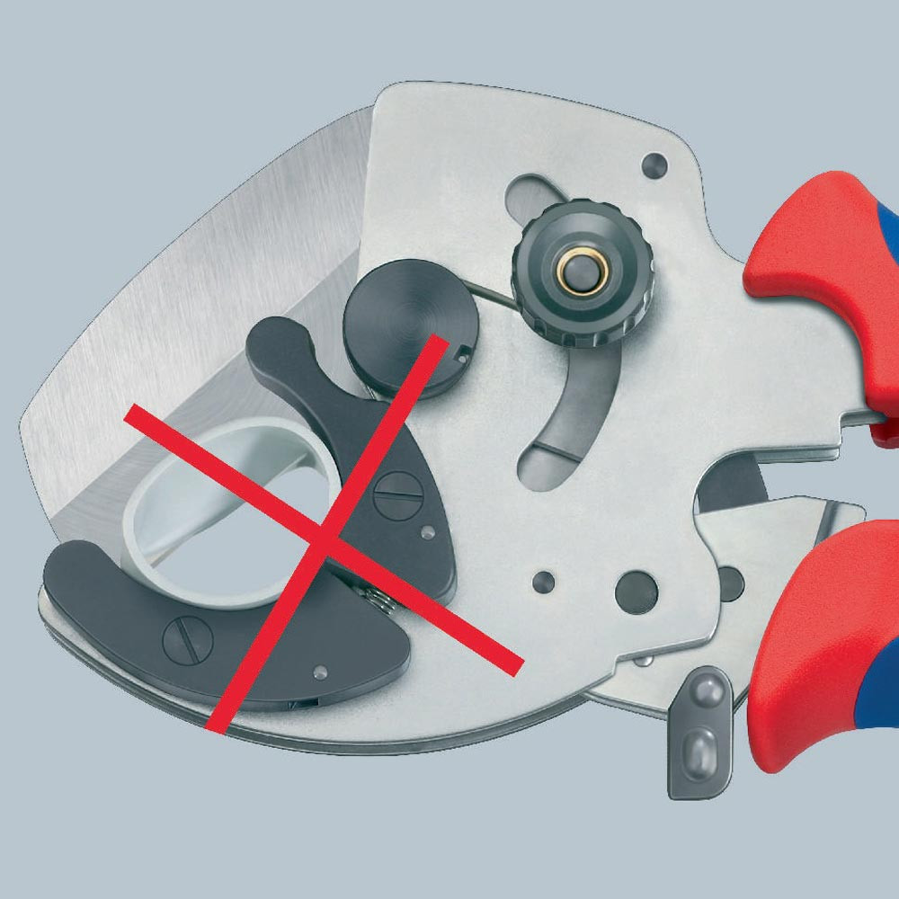 für Verbund- und Kunststoffrohre · zum Schneiden dickwandiger Rohre Ø 26 - 40 mm · schneidet Rohre nach dem Ratschenprinzip · Werkzeugkörper: Chrom-Vanadin-Elektrostahl in Sondergüte, ölgehärtet · Messer: Spezial-Werkzeugstahl, ölgehärtet, auswechselbar