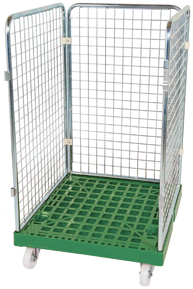 Rollbox mit Drahtgitterwänden, 3-seitig, Nutzhöhe 1020 mm, LxBxH 810x720x1200 mm, Bodenplatte aus HDPE, RAL 6024 verkehrsgrün