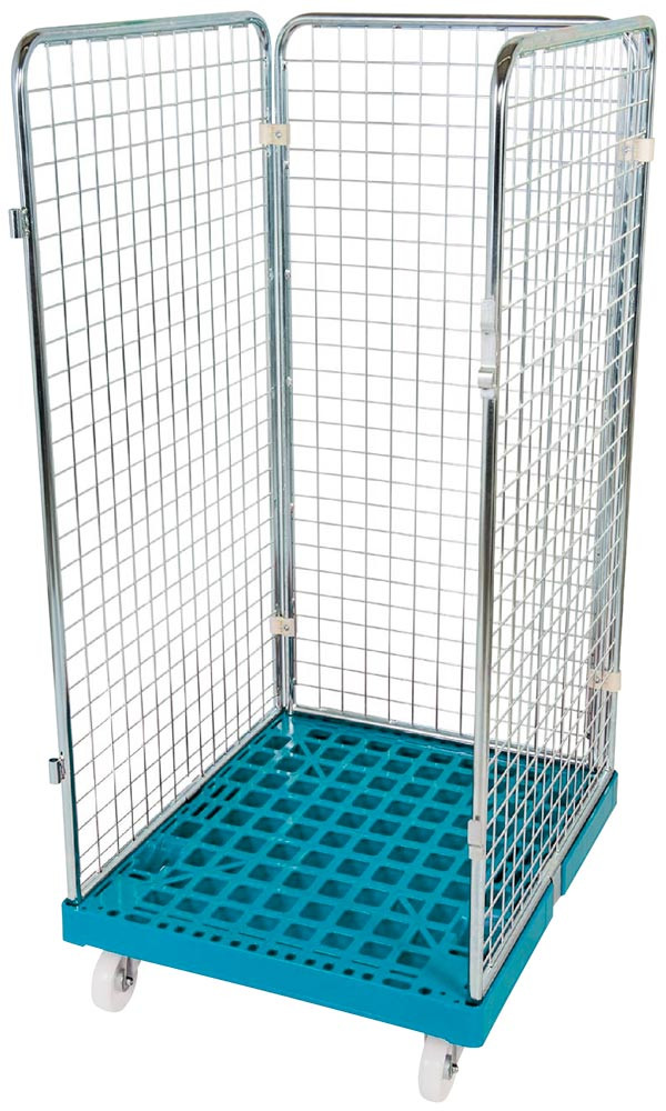 Rollbox mit Drahtgitterwänden, 3-seitig, Nutzhöhe 1020 mm, LxBxH 810x720x1200 mm, Bodenplatte aus HDPE, RAL 5012 lichtblau EP536990