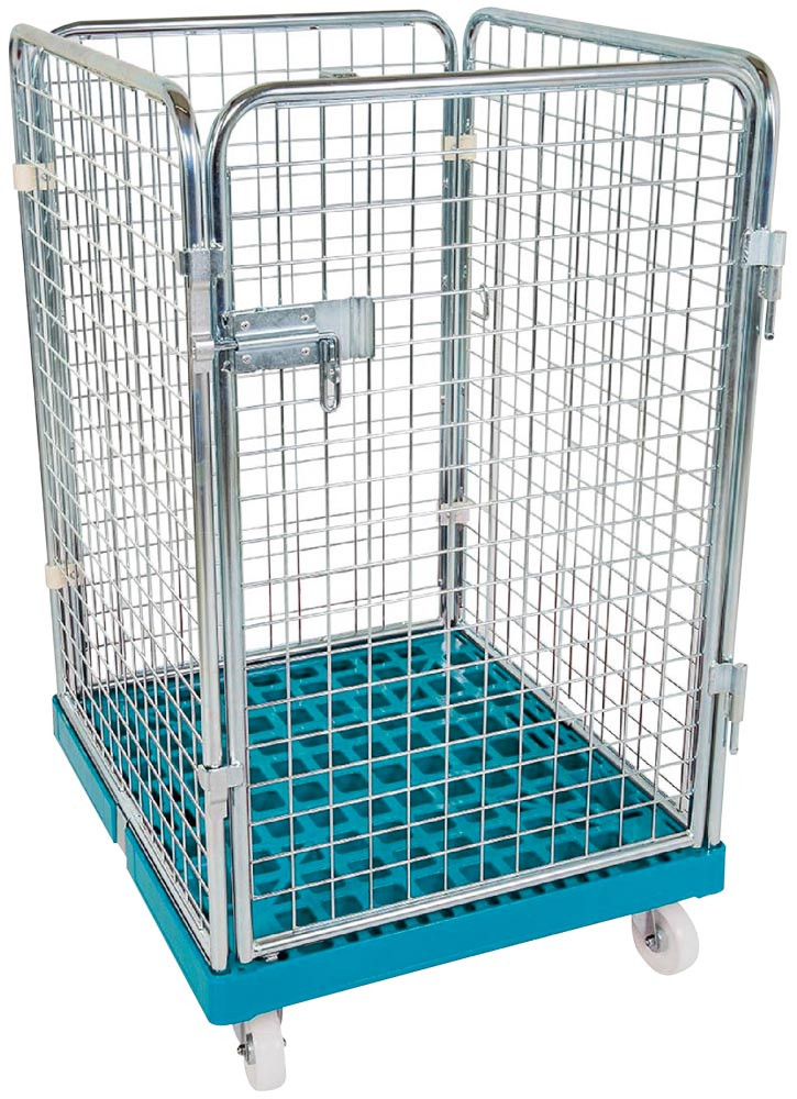Rollbox mit Drahtgitterwänden, 4-seitig (1 Tür), Nutzhöhe 1020 mm, LxBxH 810x720x1200 mm, Bodenplatte aus HDPE, RAL 5012 lichtblau EP537011