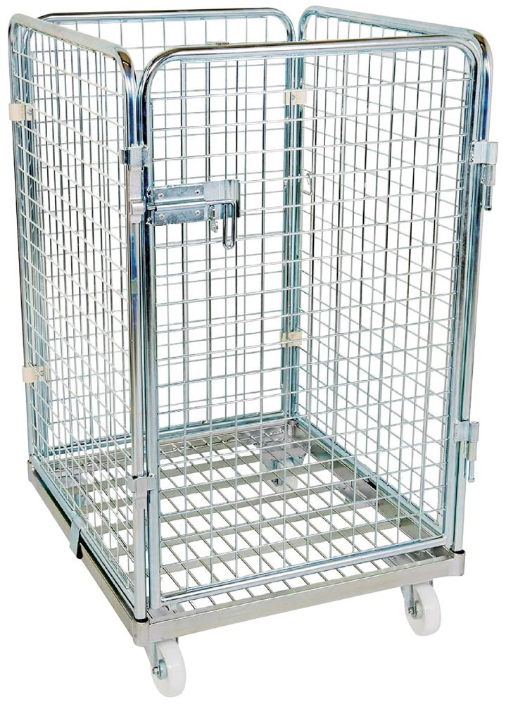 Rollbox mit Drahtgitterwänden, 4-seitig (1 Tür), Nutzhöhe 1020 mm, LxBxH 810x720x1200 mm, Bodenplatte aus Stahl, verzinkt