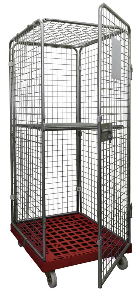 Rollbox mit Drahtgitterwänden, 5-seitig (1 Tür), 1 Boden, Nutzhöhe 1585 mm, LxBxH 810x720x1800 mm, Bodenplatte aus HDPE, RAL 3000 feuerrot EP531226