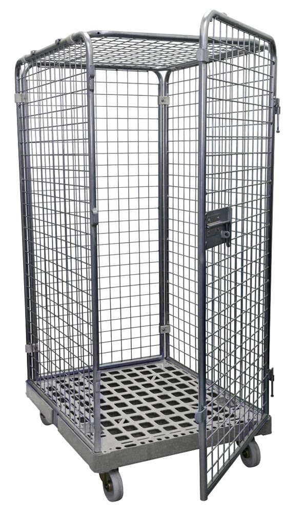 Rollbox mit Drahtgitterwänden, 5-seitig (1 Tür), Nutzhöhe 1020 mm, LxBxH 810x720x1200 mm, Bodenplatte aus HDPE, RAL 7032 kieselgrau EP531216