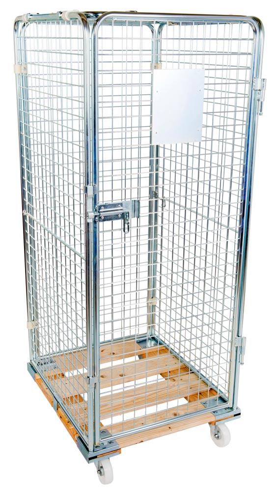 Rollbox mit Drahtgitterwänden, 5-seitig (1 Tür), Nutzhöhe 1020 mm, LxBxH 810x720x1200 mm, Bodenplatte aus Stahl, verzinkt