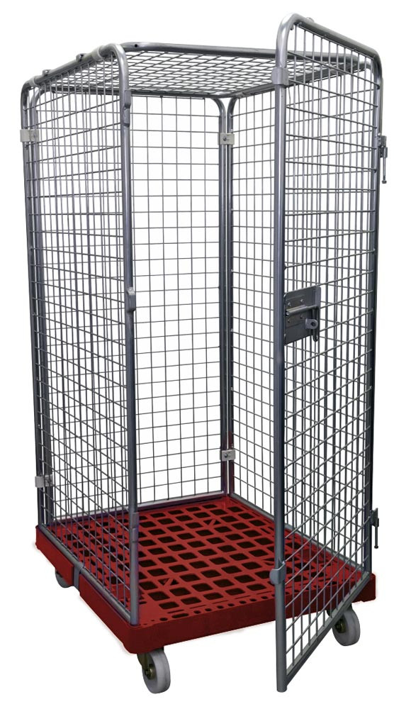 Rollbox mit Drahtgitterwänden, 5-seitig (1 Tür), Nutzhöhe 1020 mm, LxBxH 810x720x1200 mm, Bodenplatte aus HDPE, RAL 3000 feuerrot EP531218