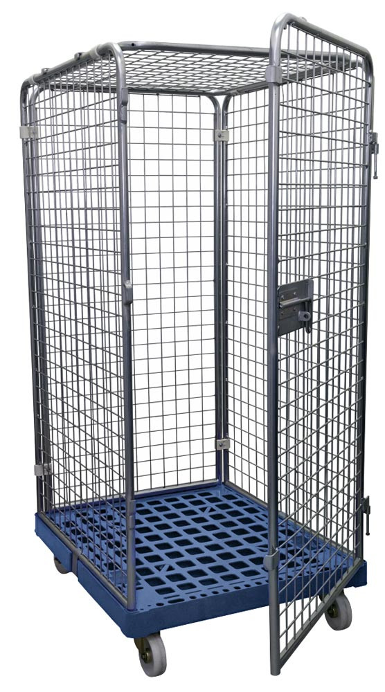 Rollbox mit Drahtgitterwänden, 5-seitig (1 Tür), Nutzhöhe 1020 mm, LxBxH 810x720x1200 mm, Bodenplatte aus HDPE, RAL 5010 enzianblau EP515721