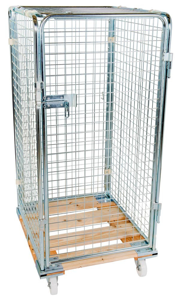Rollbox mit Drahtgitterwänden, 5-seitig (1 Tür), Nutzhöhe 1350 mm, LxBxH 810x720x1500 mm, Bodenplatte aus Holz, natur