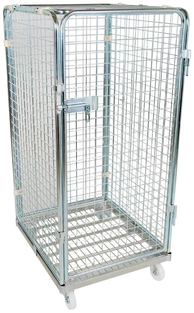 Rollbox mit Drahtgitterwänden, 5-seitig (1 Tür), Nutzhöhe 1350 mm, LxBxH 810x720x1500 mm, Bodenplatte aus Stahl, verzinkt