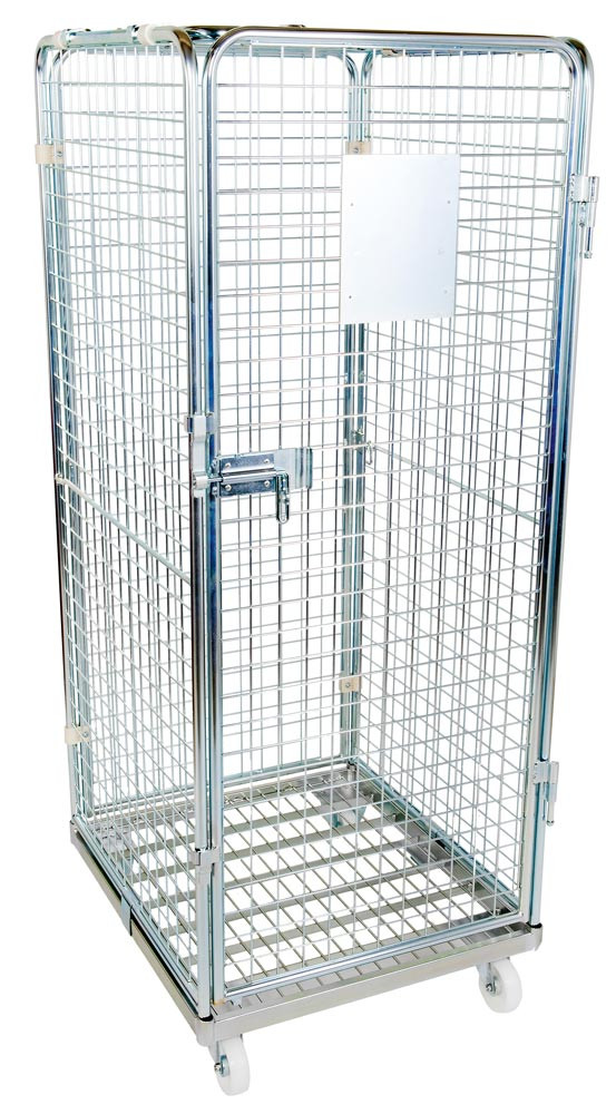 Rollbox mit Drahtgitterwänden, 5-seitig (1 Tür), Nutzhöhe 1585 mm, LxBxH 810x720x1800 mm, Bodenplatte aus Stahl, verzinkt