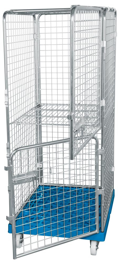 Rollbox mit Drahtgitterwänden, 5-seitig (2 Türen), 1 Boden, Nutzhöhe 1585 mm, LxBxH 810x720x1800 mm, Bodenplatte aus HDPE, RAL 5012 lichtblau