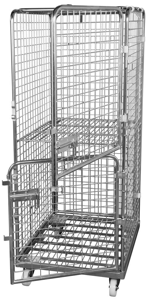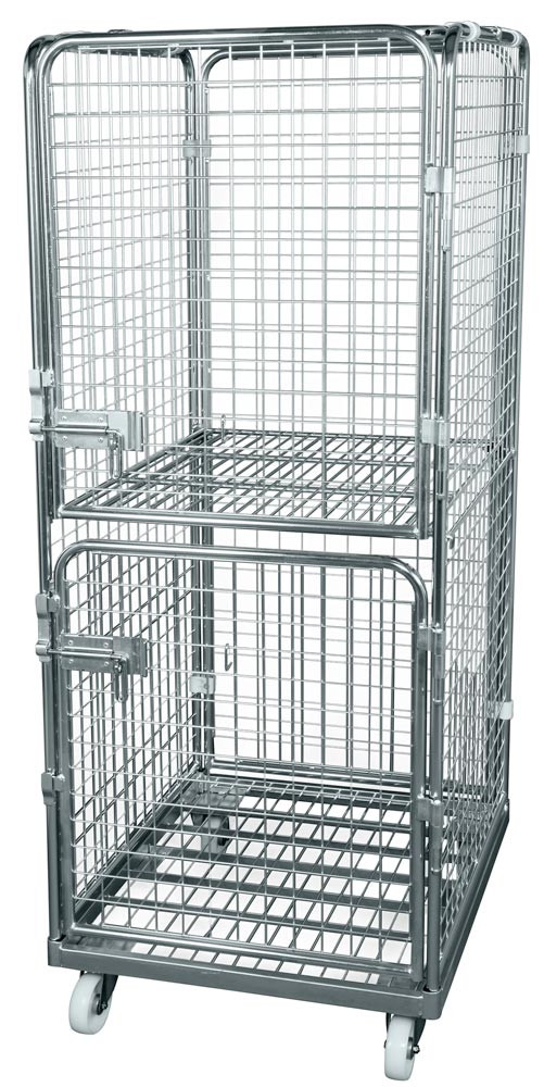 Rollbox mit Drahtgitterwänden, 5-seitig (2 Türen), 1 Boden, Nutzhöhe 1585 mm, LxBxH 810x720x1800 mm, Bodenplatte aus Stahl, verzinkt