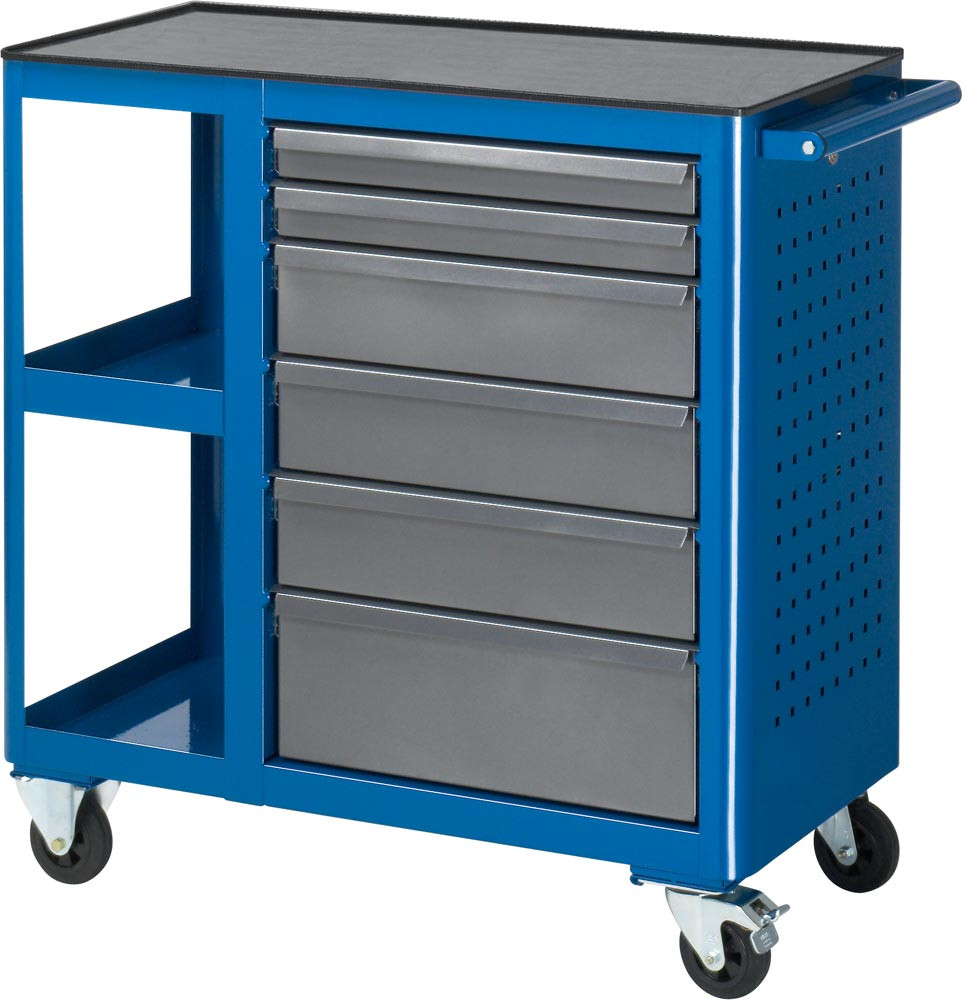 Rollwerkbank mit ABS-Ablage, 6 Schubladen: 2x65,3x125, 1x190 mm, 2 Ablagefächer, BxTxH 960x450x950 mm, RAL5010/RAL7016