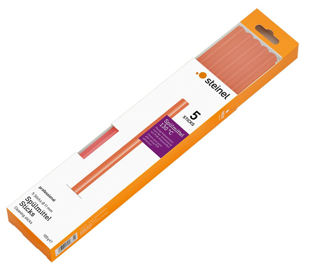 Spülmittel-Sticks reinigen Klebepistolen nach der Verwendung von Polyurethan-Klebestoffen ∙ Bei Anwendungsende oder spätestens nach 8 Std.muss die Heißklebepistole immer mit einem Spülmittel-Stick gereingt werden ∙ Aufschmelztemperatur 130°