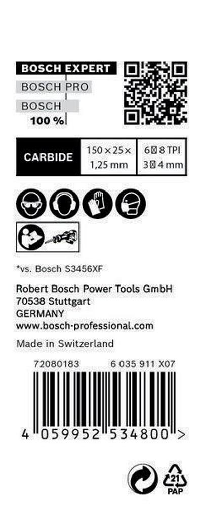 Säbelsägeblatt Expert Multimaterial Länge 150 mm Breite 25 mm Zahnteilung TPI 6-8 3-4 mm S-Schaft 2608900389 1 Stück / Karte E6423419